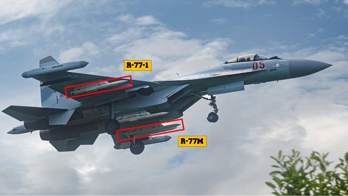 रूस ने अपने दो सबसे घातक विमानों सुखोई-35 और स्टील्थ लड़ाकू विमान सुखोई-57 को नई घातक हवा से हवा में मार करने वाली मिसाइल R-77M या K-77M से लैस कर दिया है। यही नहीं यूक्रेन युद्ध में इस नई मिसाइल का रूसी वायुसेना ने इस्तेमाल करना भी शुरू कर दिया है। यह नई R-77M मिसाइल पहले की R-77 बियांड विजुअल रेंज मिसाइल से काफी ज्यादा ताकतवर है। इस नई मिसाइल के आने से यूक्रेन के वायुसेना की चुनौती काफी बढ़ गई है। सोशल मीडिया में एक तस्वीर वायरल हो रही है जिसमें दिखाई दे रहा है कि Su-35S फ्लैंकर मल्टीरोल विमान R-77M से लैस है। यूक्रेनी सेना के सूत्रों ने भी खुलासा किया है कि रूसी विमान अब R-77M मिसाइल से लैस हैं। यह वही दोनों विमान हैं जिन्हें रूस ने भारत को ऑफर किया है। भारत ने सुखोई-35 और सुखोई-57 स्टील्थ विमान पर अभी कोई फैसला नहीं किया है।