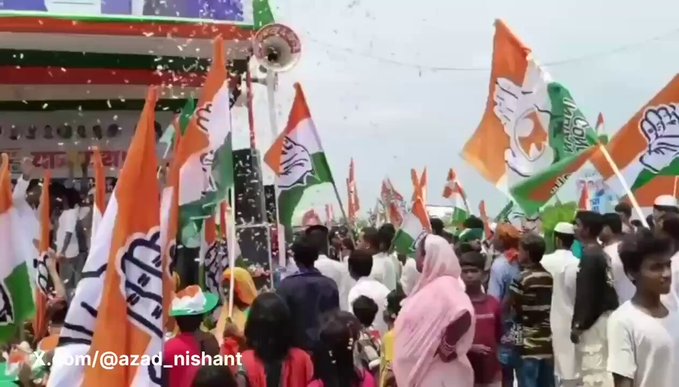 सोशल मीडिया पर एक वीडियो भी काफी शेयर किया जा रहा है, जिसमें कांग्रेस के झंडे लहराए गए और मंच पर मौजूद पार्टी कार्यकर्ता लाउडस्पीकर पर चिल्लाए. खुले मंच पर एक भीड़ दिखाई दे रही है, जहां राहुल गांधी, प्रियंका गांधी वाड्रा और तेजस्वी यादव की तस्वीर लगी है. हालांकि एबीपी न्यूज इस वीडियो की पुष्टि नहीं करता है.