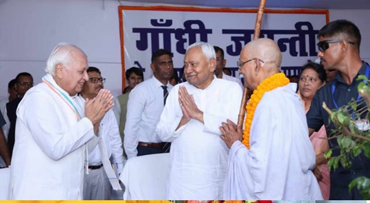 राष्ट्रपिता महात्मा गांधी की जयंती के अवसर पर राज्यपाल आरिफ मोहम्मद खान एवं मुख्यमंत्री नीतीश कुमार ने पटना के गांधी मैदान स्थित राष्ट्रपिता महात्मा गांधी की विशाल आदमकद प्रतिमा/चित्र पर माल्यार्पण किया और उनके व्यक्तित्व एवं कृतित्व का स्मरण किया। इस अवसर पर मुख्यमंत्री ने उनके आदर्शों को अपने जीवन में उतारने का संकल्प भी लिया।