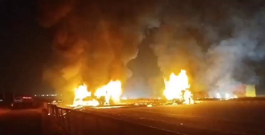 दुर्घटना के बाद हवा में फैला काले धुएं का गुबार
